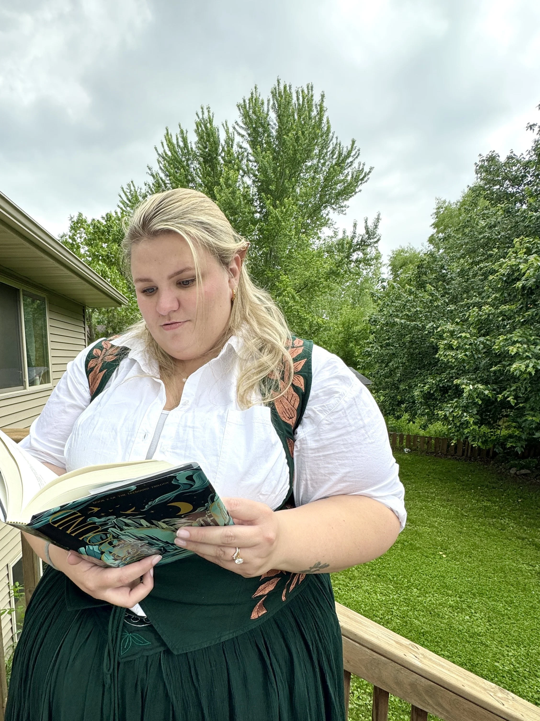 Allie (of @Alliesannotation) is a lifelong Fantasy reader. While she technically has a full-time job in software consulting, her primary calling is over-filling her schedule with book events and reading fantasy, romance, and everything in between. She first started engaging in online book spaces in 2022, and dove in with her own accounts in 2023 because she’s terrible at making friends as an adult, and this community helps her manage it! She also serves on the board of a Women in Tech nonprofit, and coaches high school speech and theater. She lives just North of the Twin Cities with her husband and two dogs.
